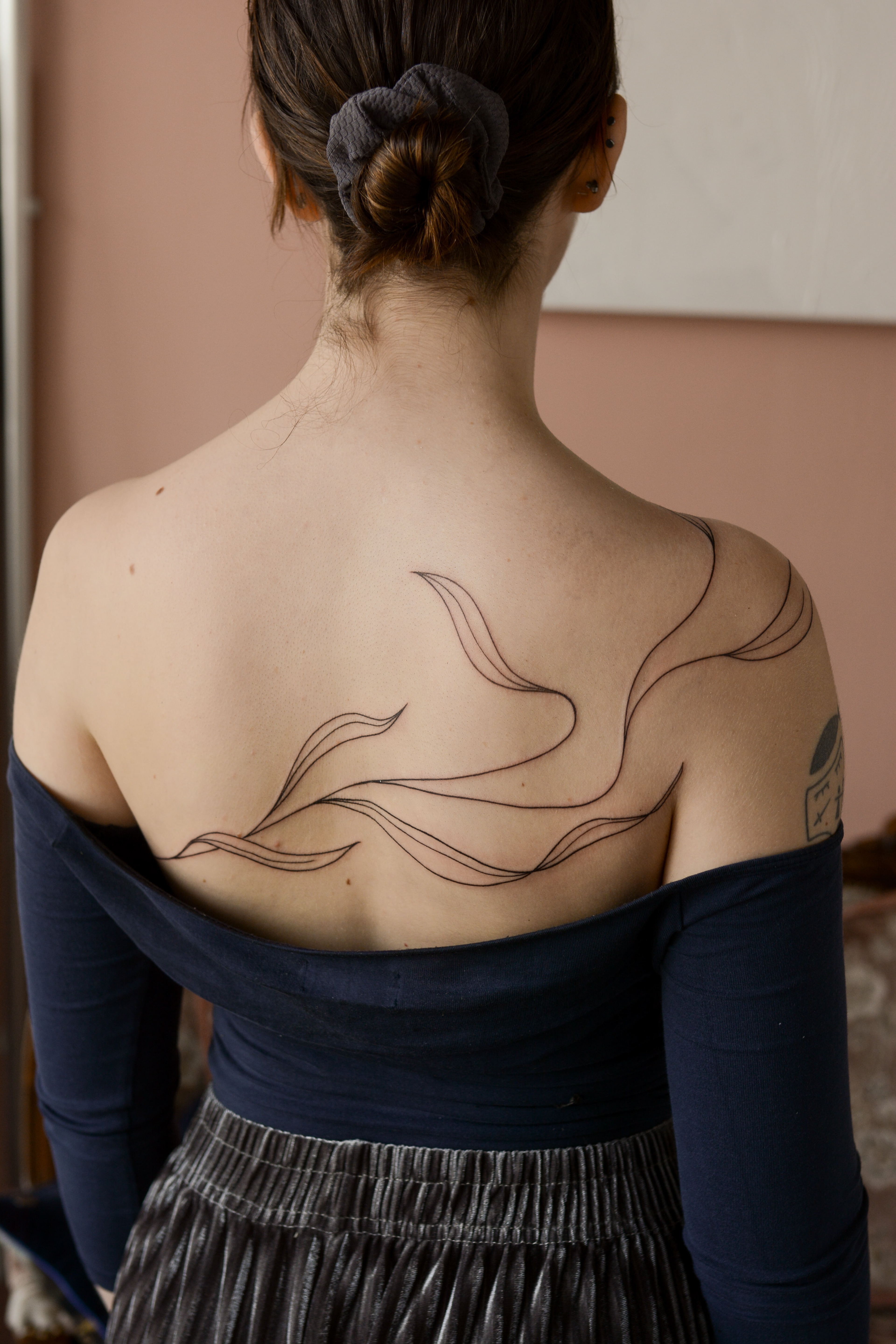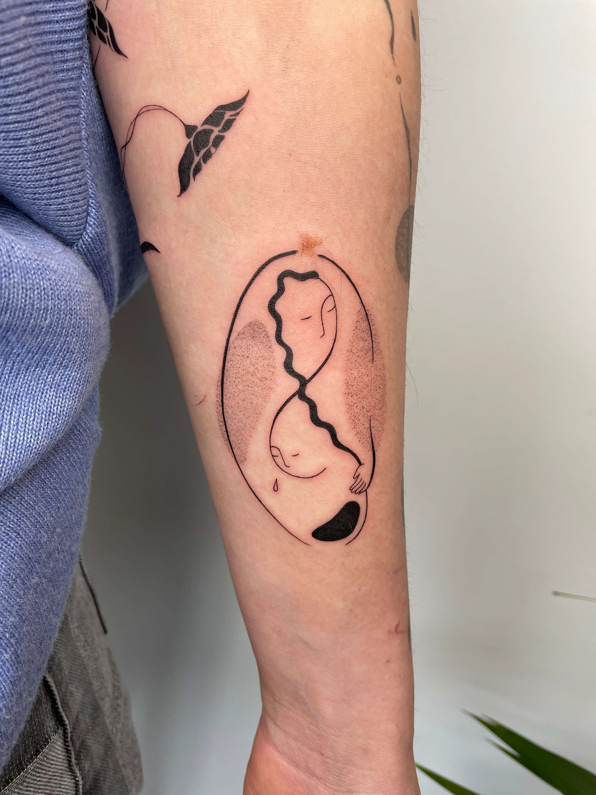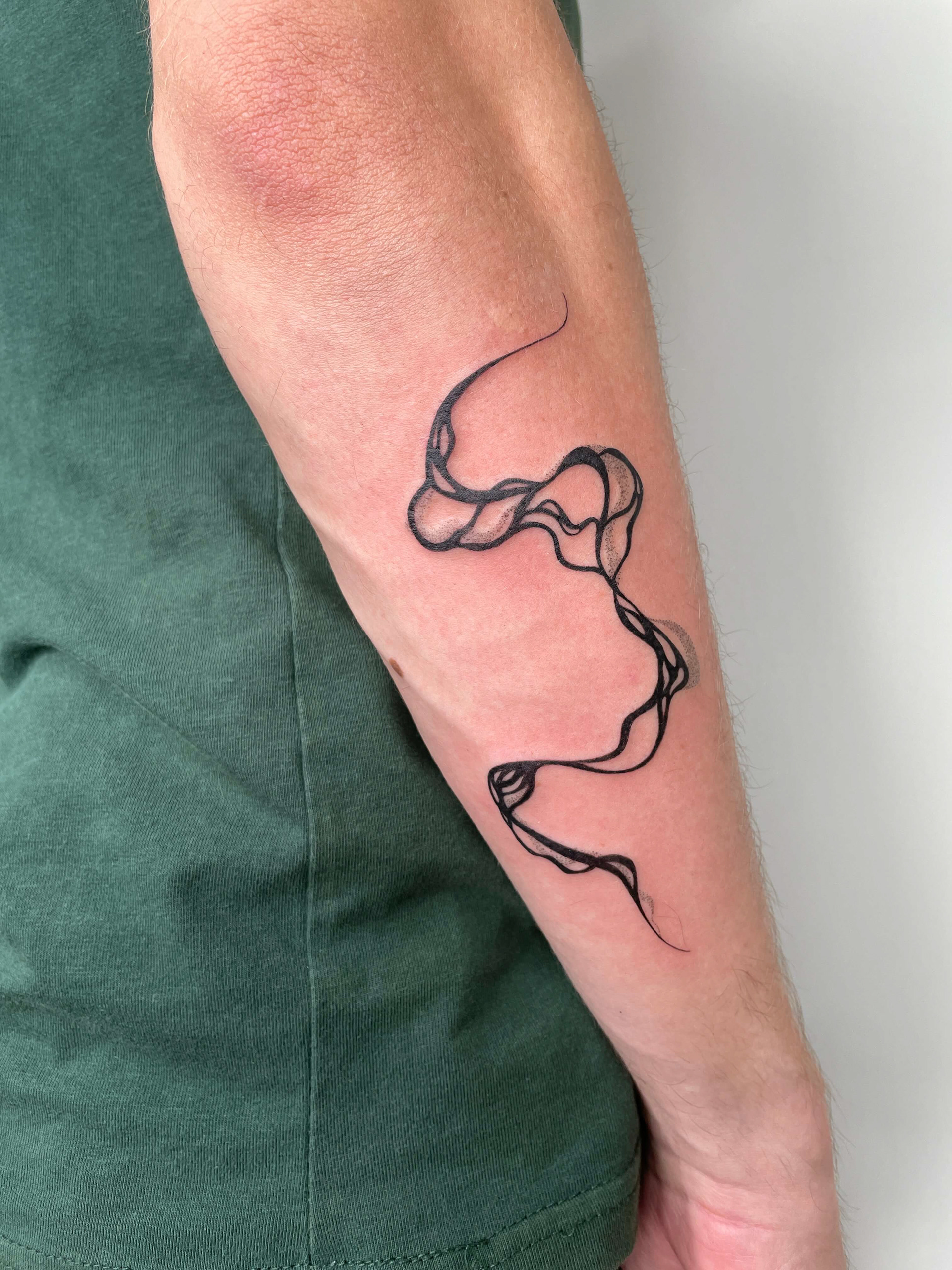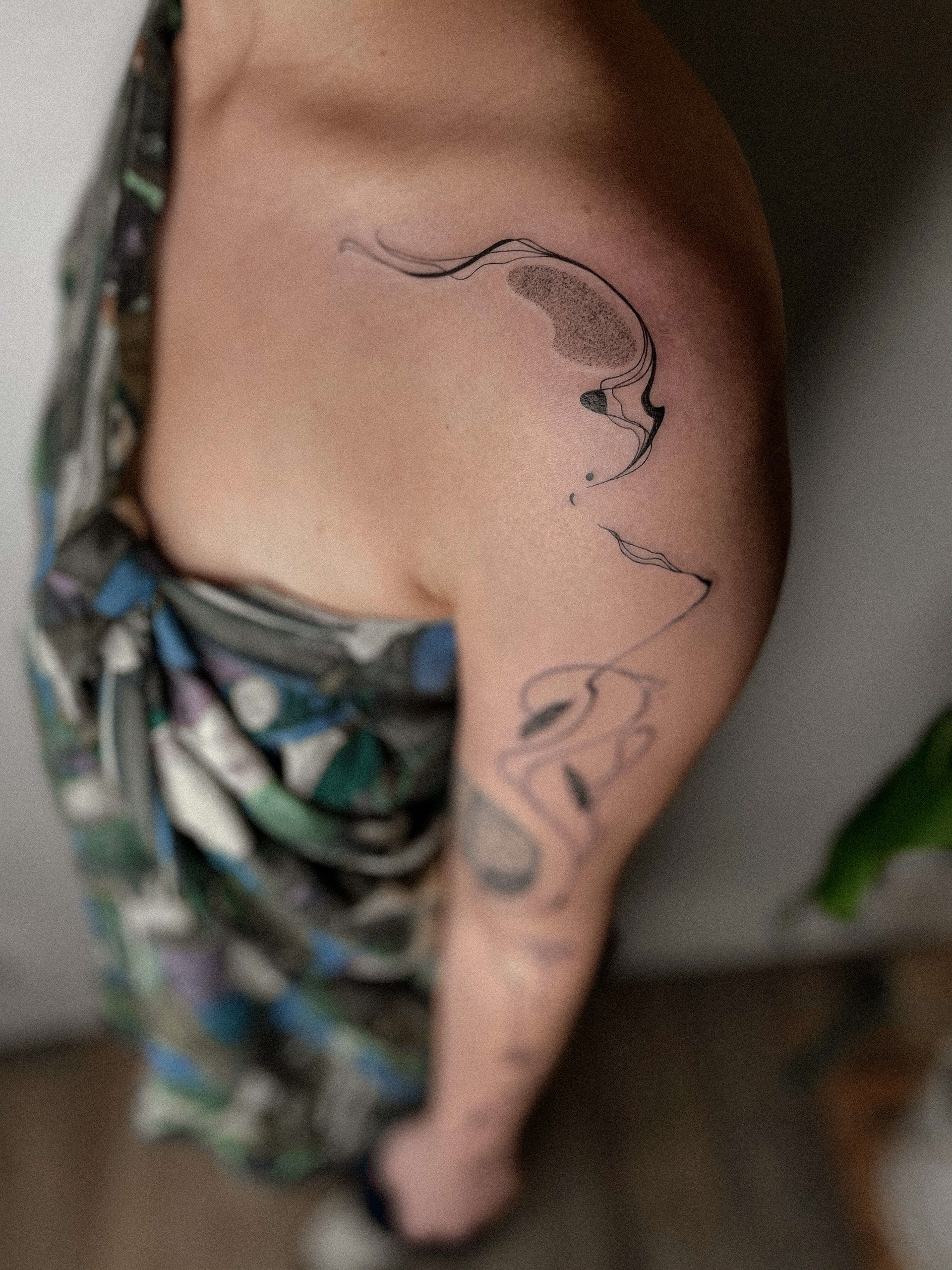 Hier seht ihr eine Auswahl an unterschiedlichen Stilrichtungen. Ich kann meine Arbeit in drei grobe Stilrichtungen einteilen, das sind folgende: Oneliner und Linework: Designs aus einer Linie ohne Schattierung, Fineline: Detaillierte Designs mit zarter und/ oder starker Schattierung, Fusion: Surrealistische Designs mit schwarzen Flächen, grafisch, verträumt, Dotwork.