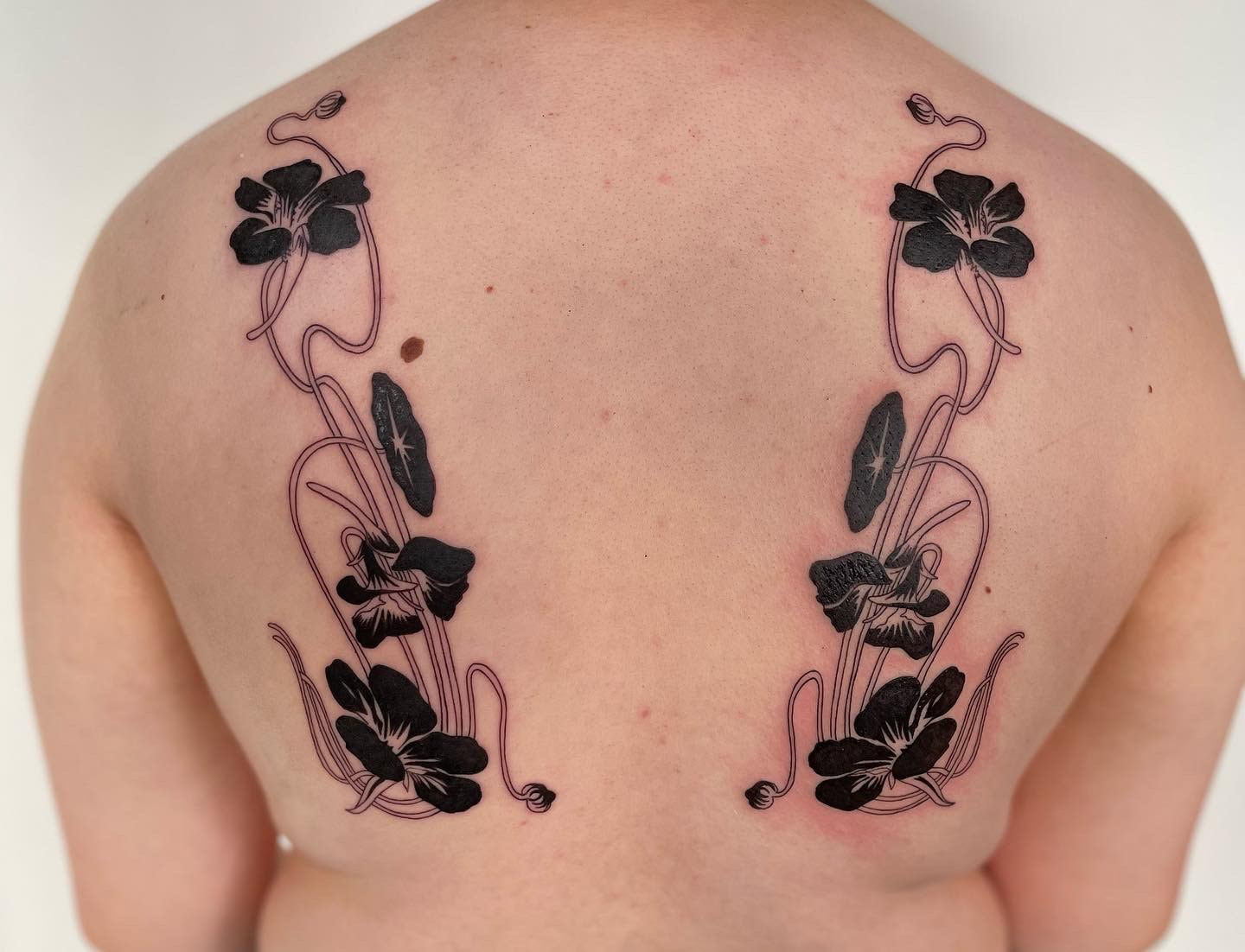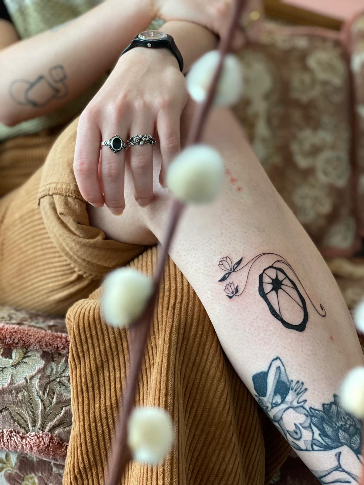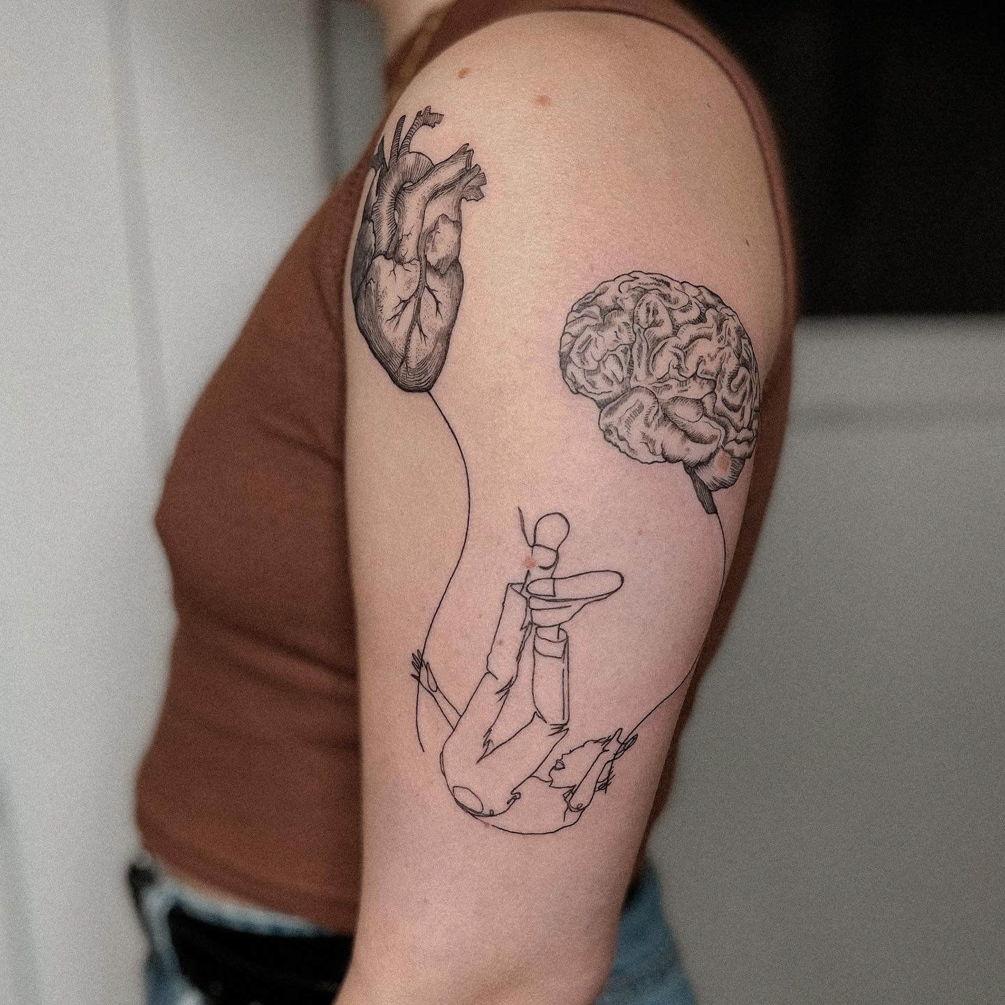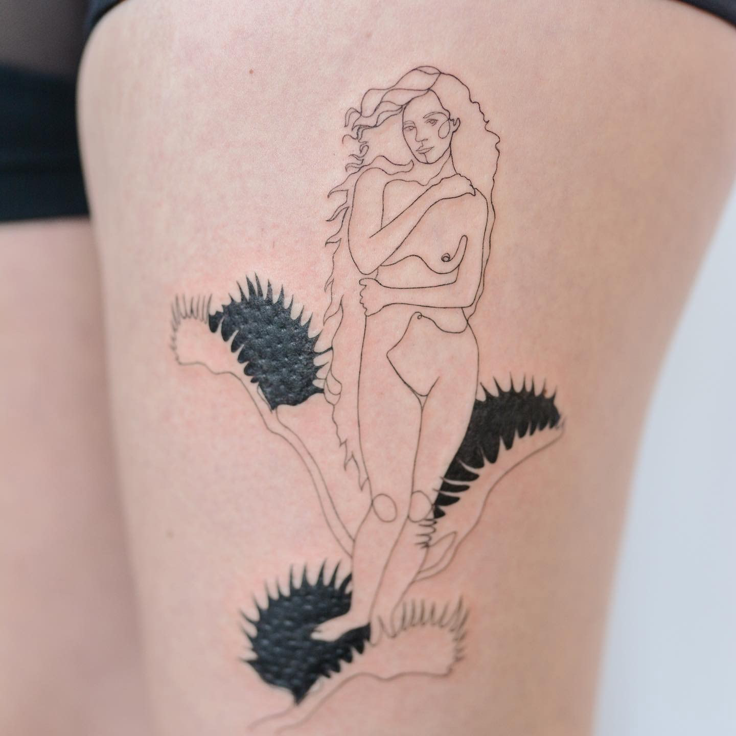 Hier seht ihr eine Auswahl an unterschiedlichen Stilrichtungen. Ich kann meine Arbeit in drei grobe Stilrichtungen einteilen, das sind folgende: Oneliner und Linework: Designs aus einer Linie ohne Schattierung, Fineline: Detaillierte Designs mit zarter und/ oder starker Schattierung, Fusion: Surrealistische Designs mit schwarzen Flächen, grafisch, verträumt, Dotwork.